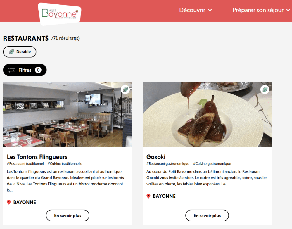 - Placement premium sur visitbayonne.com : mise en avant (haut de liste) de votre activité dans votre catégorie ;